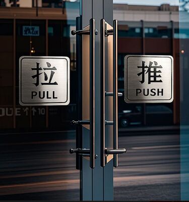 Provides intuitive door operation instructions, reducing user confusion and improving traffic flow in commercial spaces.