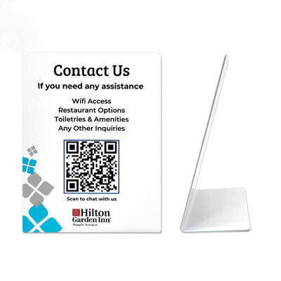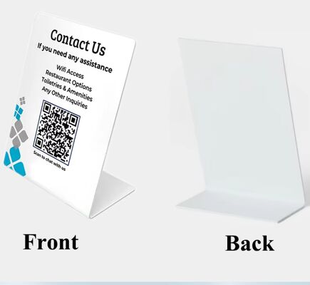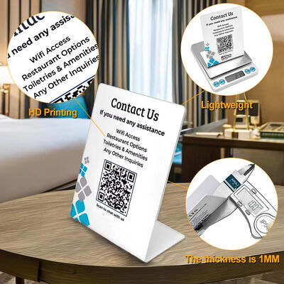 | Product name | Plastic Tag Labels Customize White Pvc Plastic Sign Stands Logo Printed L Shape Hotel Restaurant Table Qr Code Display For Business |