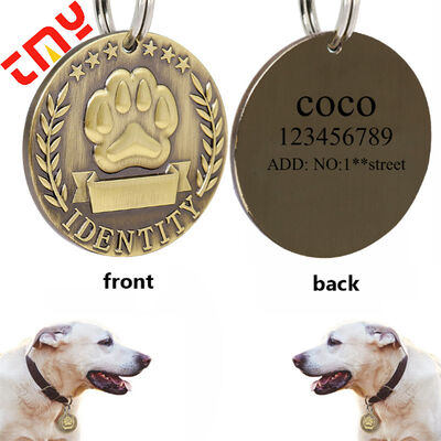 Item | Classical Rectangular Round Zinc Dog Tag With Dog Paw Foot Print Identity Pet Tags |