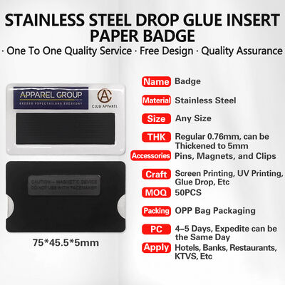 Product Name | Custom logo UV Printing Staff Waiter Blank Reusable Replaceable Name Magnetic Stainless Steel Metal Epoxy Name Badges with Paper |