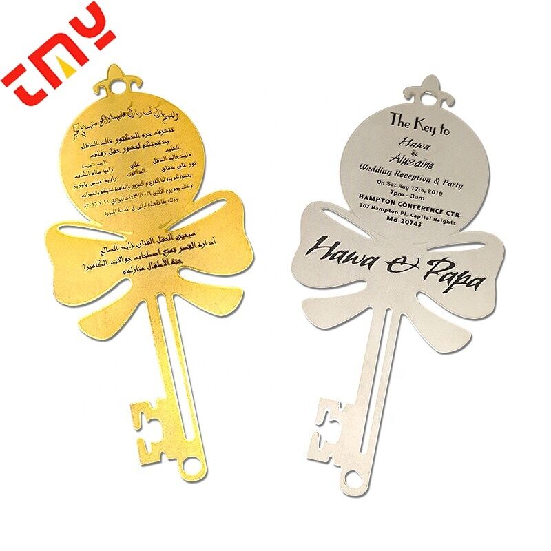 Product Name | Custom Design Luxury Etched Key Shape Stainless Steel Metal Wedding Invitation Card |