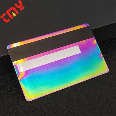 High Quality Brushed Rainbow Blank Bank Card Size 4442 Metal Credit Card With Magnetic Stripe